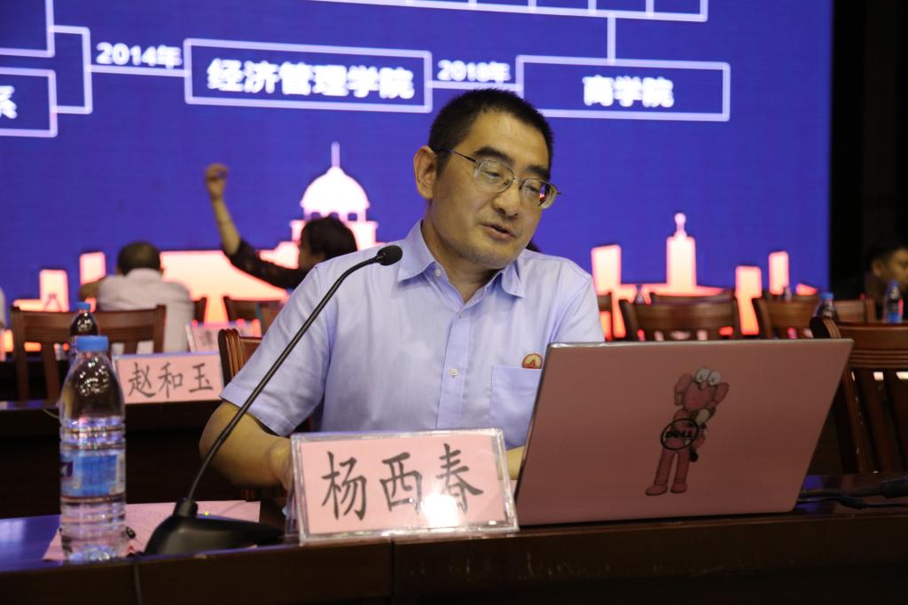 会上,商学院党委书记雷飞在致词中希望全体新生要树立正确的人生价值观,以良好的学习、生活态度投入大学生活。杨西春院长向新生做了商学院院情介绍,杨院长从商学院的发展历程、专业设置、学科建设、师资结构、办学成果、特色校园文化等方面进行了详细的介绍,让全体2019级新生对商学院有了更深入的了解