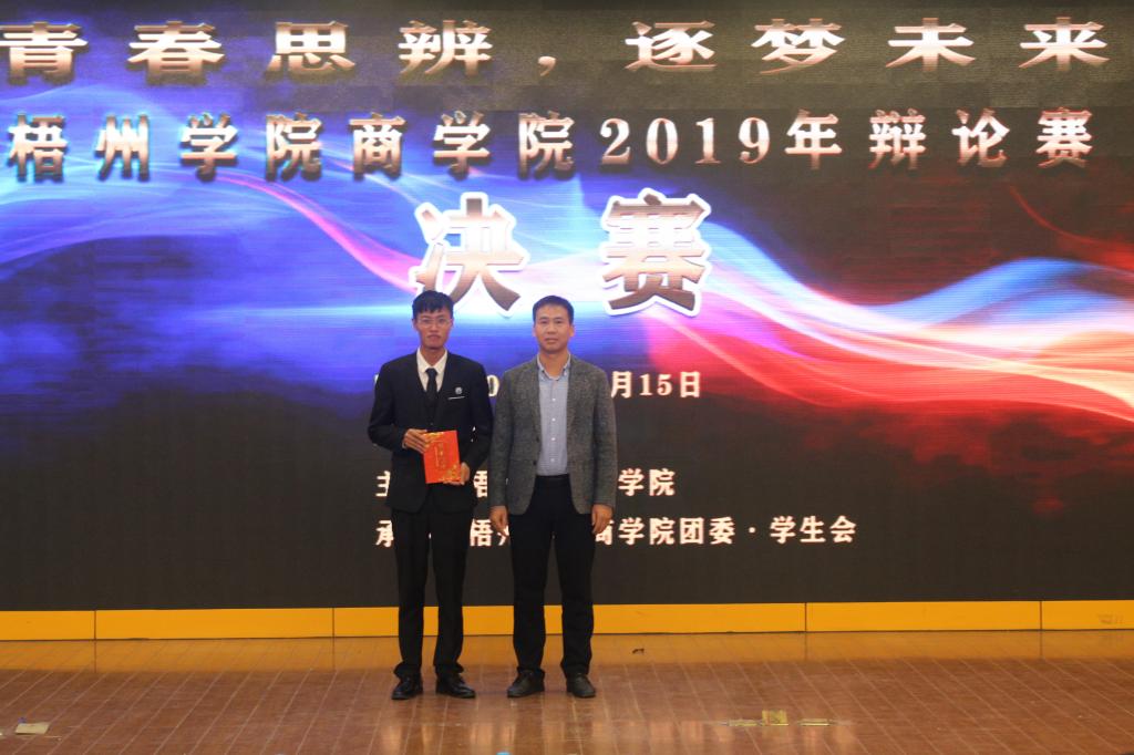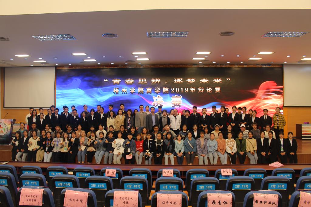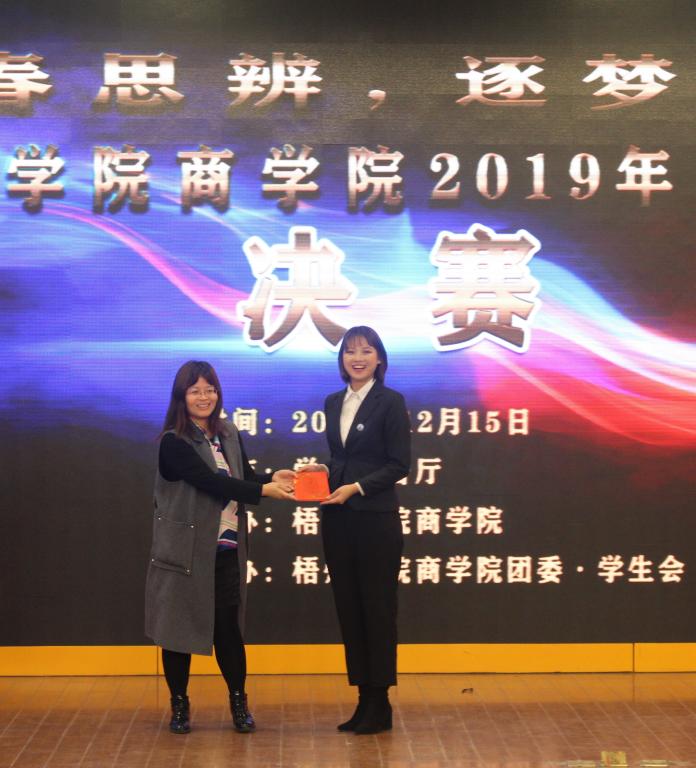 12月15日晚19:30,必赢3003no1线路检测中心商学院在明理楼学术报告厅成功举办2019年“青春思辨,逐梦未来”辩论赛决赛。梧州广播电视台综艺节目部主任、梧州中华文化促进公务理事、梧州朗诵专业委员会主任冯宇红、梧州朗诵专业委员会副主任、必赢3003no1线路检测中心文学与传媒学院副教授秦廷良、校友工作科科长甘霞、中共必赢3003no1线路检测中心商学院委员会副书记黄焕克、共青团必赢3003no1线路检测中心商学院学生工作办公室主任、团委书记罗程飞、商学院辅导员钟懿博、杜艳华、肖雅予、谢兵出席本次活动。冯宇红老师、甘霞老师、秦延良老师担任辩论赛评委。