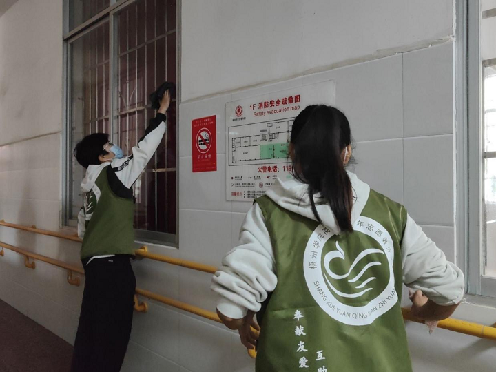 活动最后,志愿者们进行卫生整洁工作。他们认真清扫地面,擦拭护栏,为爷爷奶奶们打造干净舒适的环境。志愿者们的付出,让爷爷奶奶们倍感温暖和关怀。